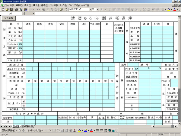 酒造の現場で使用する帳票集。印刷して使用する他、一部PC入力(Excel)に対応。