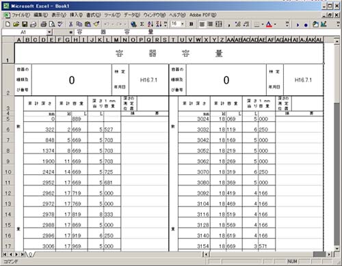 容器早見表(桶帳)をパソコンで使用するためのソフト。水検による新規容器の検定にも対応。